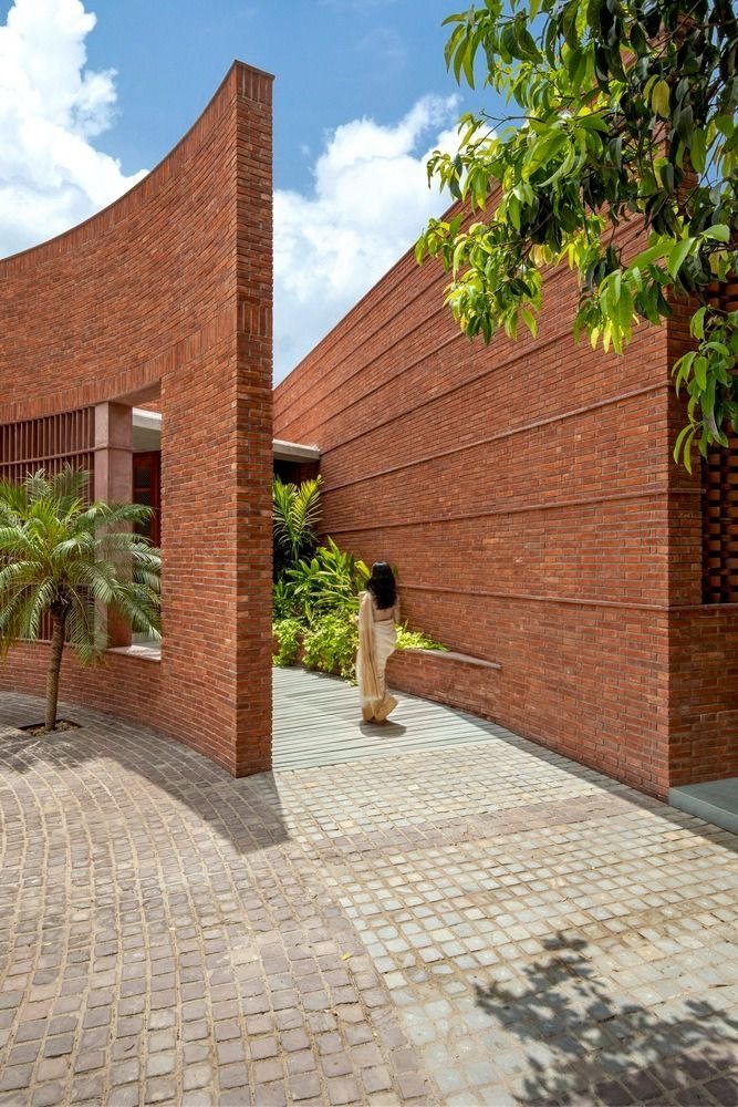 Constructed with raw brick and exuding the precision of the local mason, the spacing of the brickwork provides excellent natural ventilation and soft sunlight filtering into the building, a prerequisite of architecture in tropical climates. At night, the building glows like a lantern when illuminated.